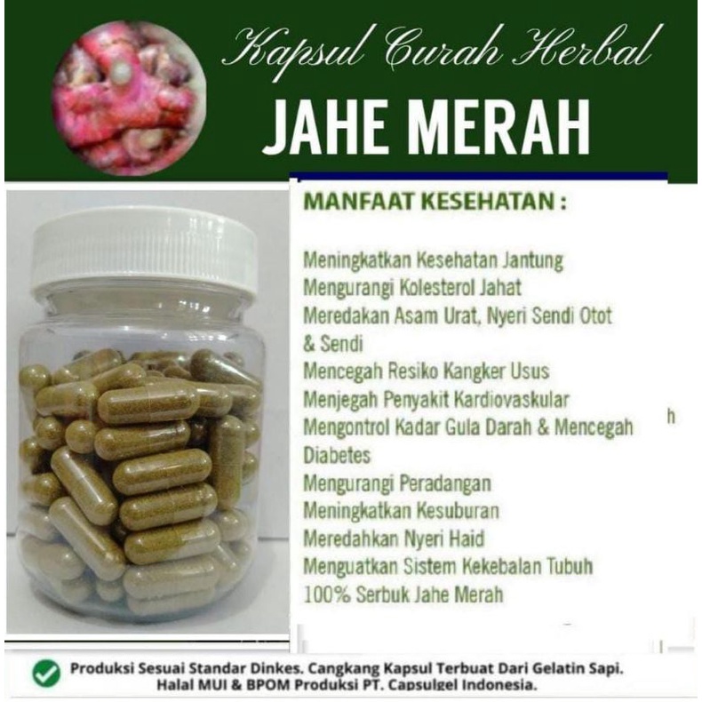 Jual Jahe Merah 100 Kapsul Herbal Anti Penuaan Dini Anti Radang Nyeri Haid Shopee Indonesia